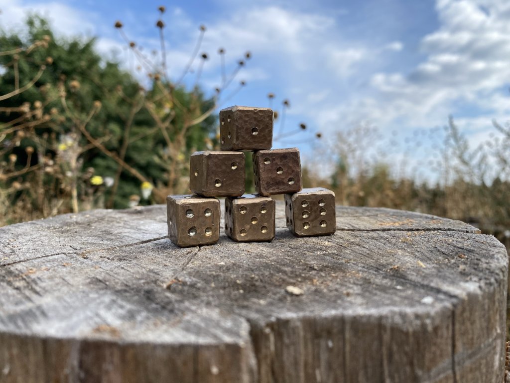 Bronzové lité-kované hrací kostky